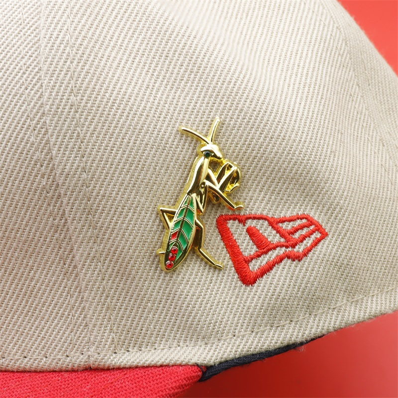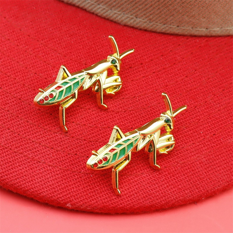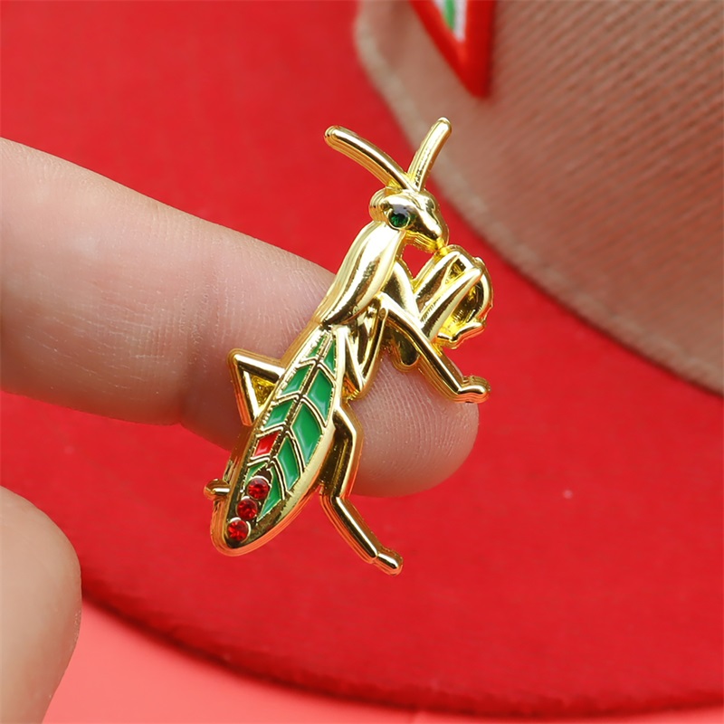 3D Insect-Themed Cap/Bag DecorFeaturing lifelike 3D praying mantis shapes, these pins blend shiny gold metal, vivid green enamel, and red gem accents. They add unique, nature-inspired flair to caps/bags, ideal for insect lovers seeking distinctive accessories.