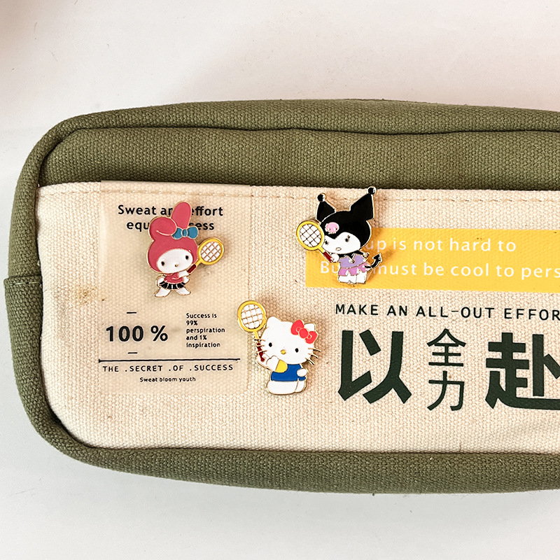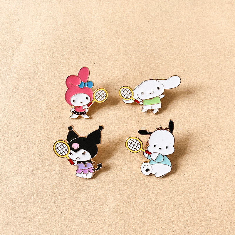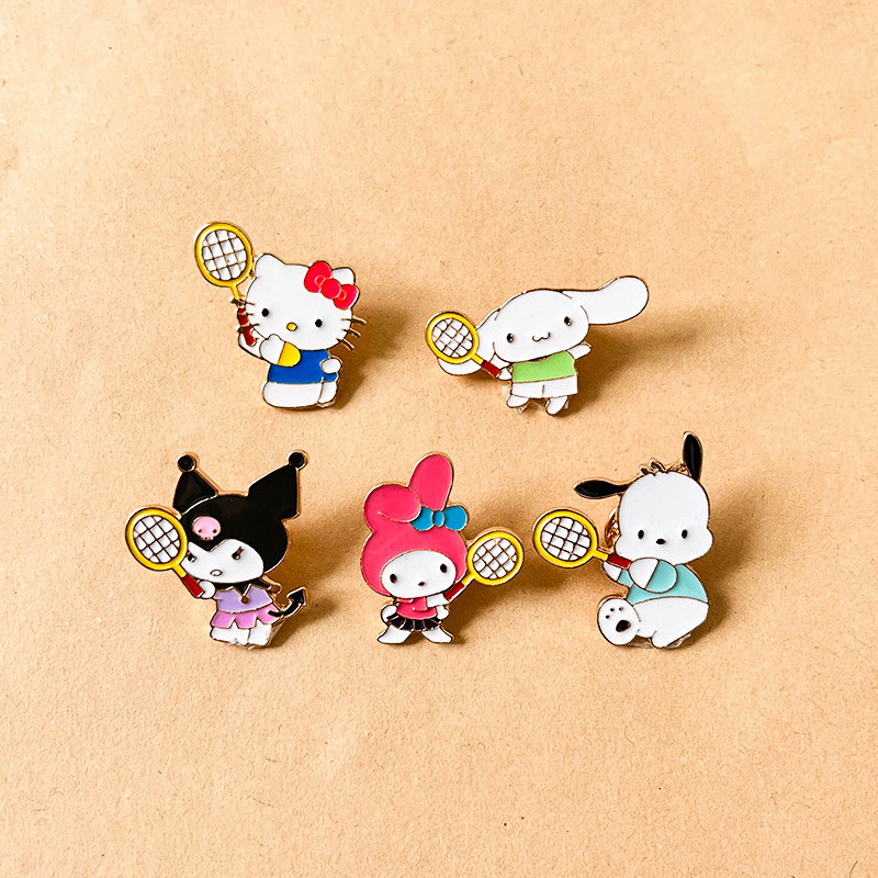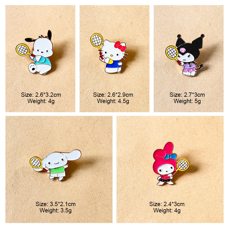 5 vibrant pins feature Hello Kitty, Cinnamoroll, Kuromi, My Melody, and Pochacco—each wielding a tennis racket, blending Sanrio charm with playful sporty vibes. Perfect for fans to add cute flair to bags/jackets or collect as cheerful character keepsakes.