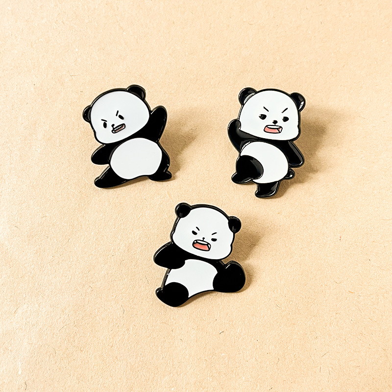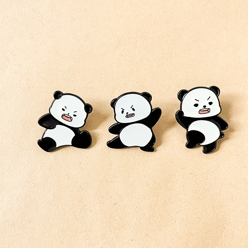 These bold black-and-white enamel pins feature 3 sassy panda designs with exaggerated, playful expressions. Sleek, cartoonish styling adds quirky charm to bags/jackets—ideal for panda lovers as whimsical, eye-catching daily accessories or fun collectibles.