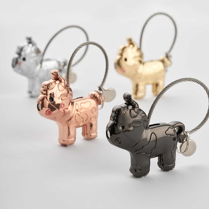 Made of metal, these keychains come in rose gold, silver, gold, and black, featuring cute sheep designs with cable straps. They’re perfect for couples to organize keys, adding a stylish, whimsical touch, and are great for gifting or daily use in romantic and animal-centric lifestyles.