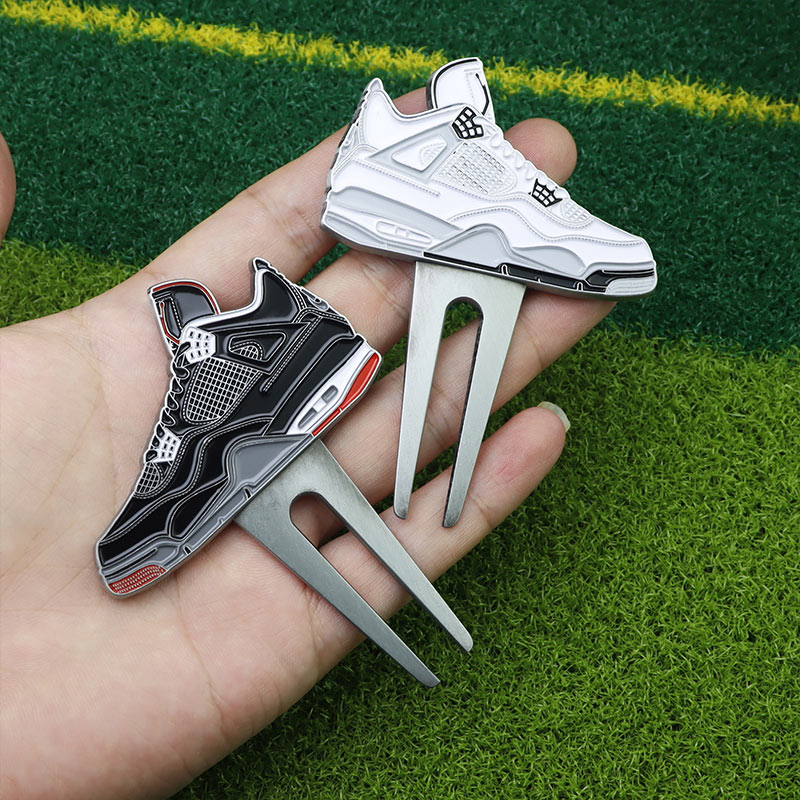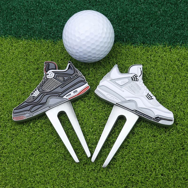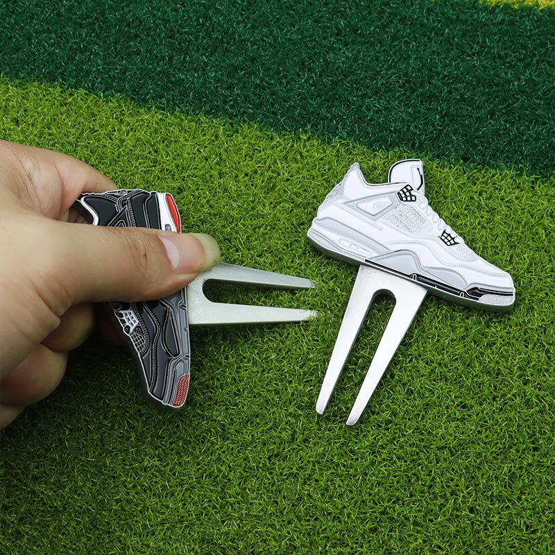 This 60g (90mm) sneaker-styled tool (black/white) fixes green divots with its durable 5mm build. Its detailed shoe design (replicating iconic sneakers) adds a trendy, unique flair—ideal for golfers who love merging sport and street style.