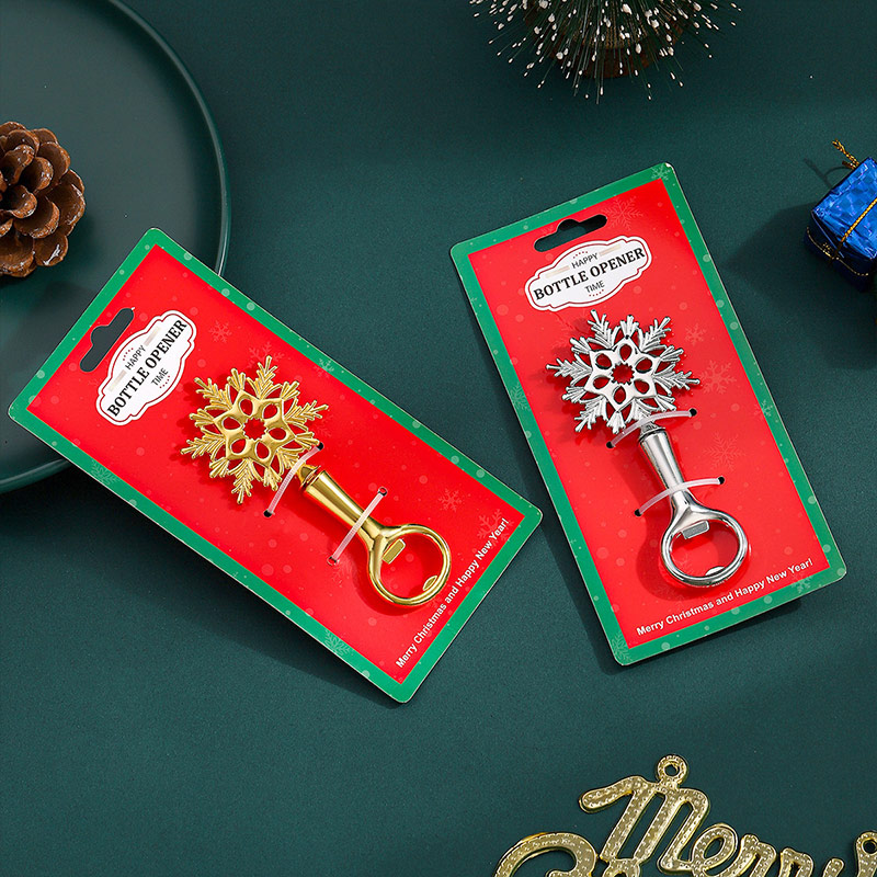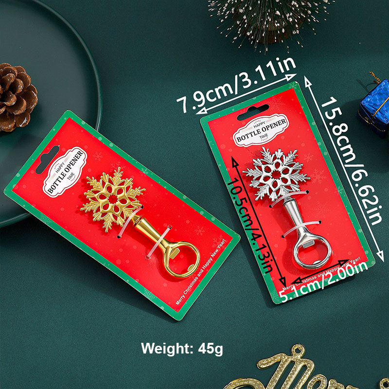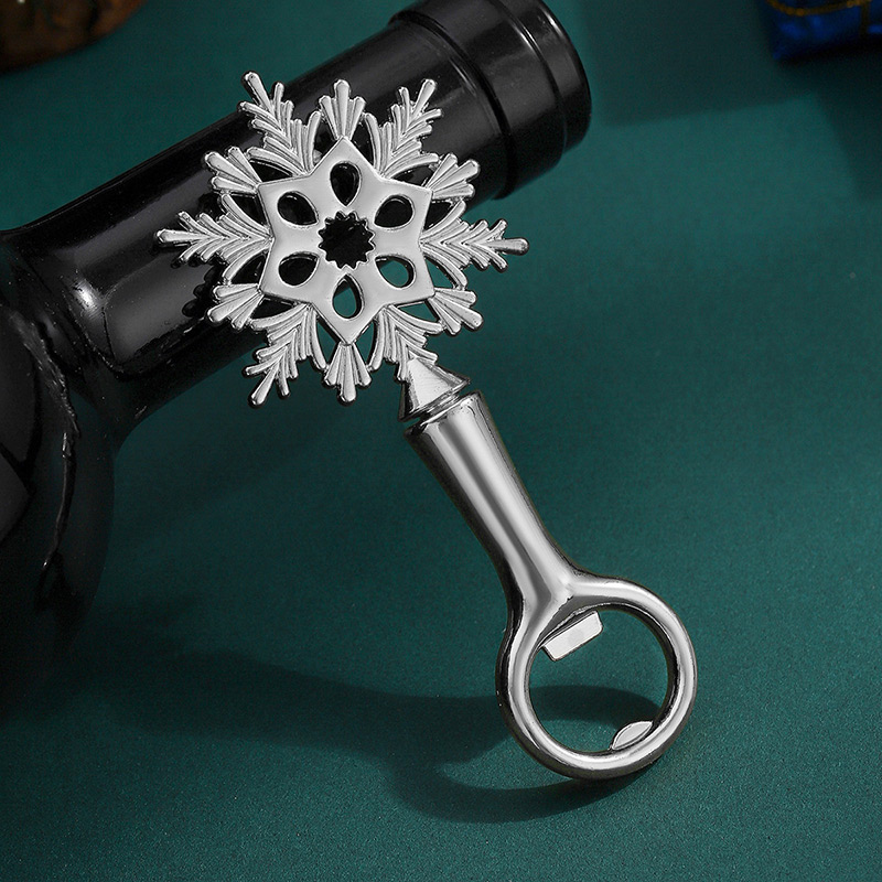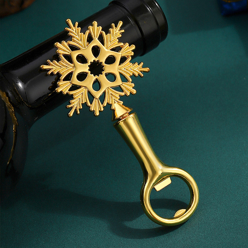 This 45g (15.8cm) opener features an intricate snowflake shape (shiny gold/silver finish) with detailed cutouts. It pops caps smoothly, blending winter holiday charm with decorative elegance—ideal for Christmas parties, New Year gatherings, or a festive gift for winter decor lovers.