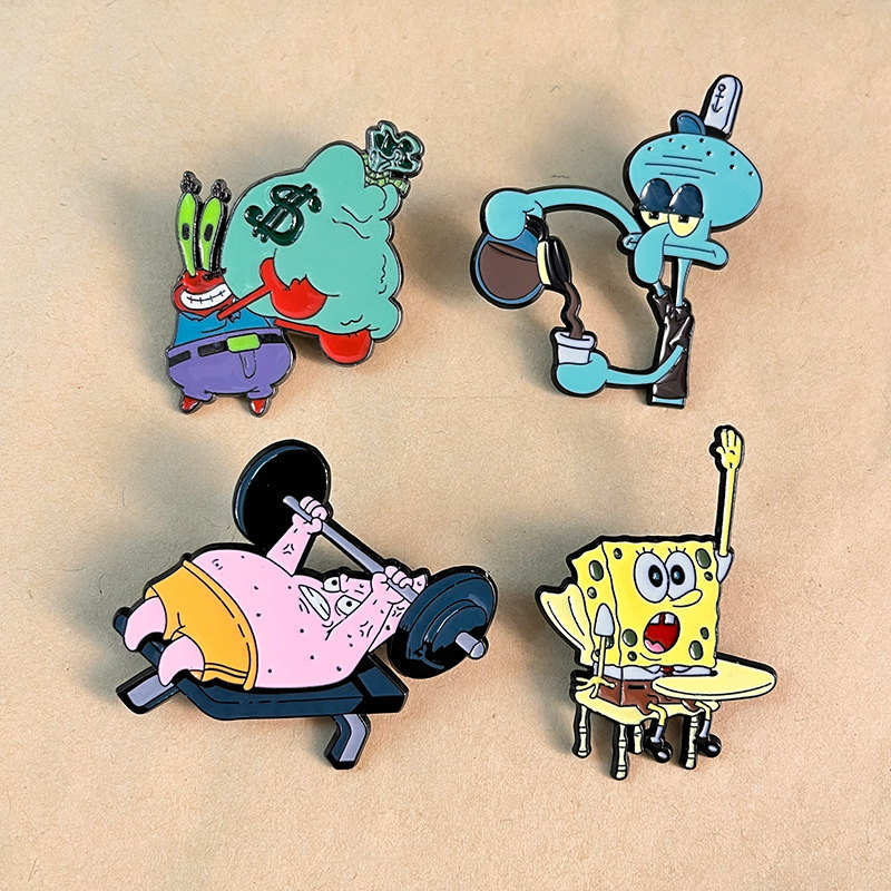 These SpongeBob pins have scene-shaped designs (Mr. Krabs’ cash pile, Patrick’s weight bench) with bold, glossy detailing. They adorn backpacks, jackets, or hats—perfect for cartoon lovers to showcase nostalgic, humorous flair in daily outfits or fan gatherings.