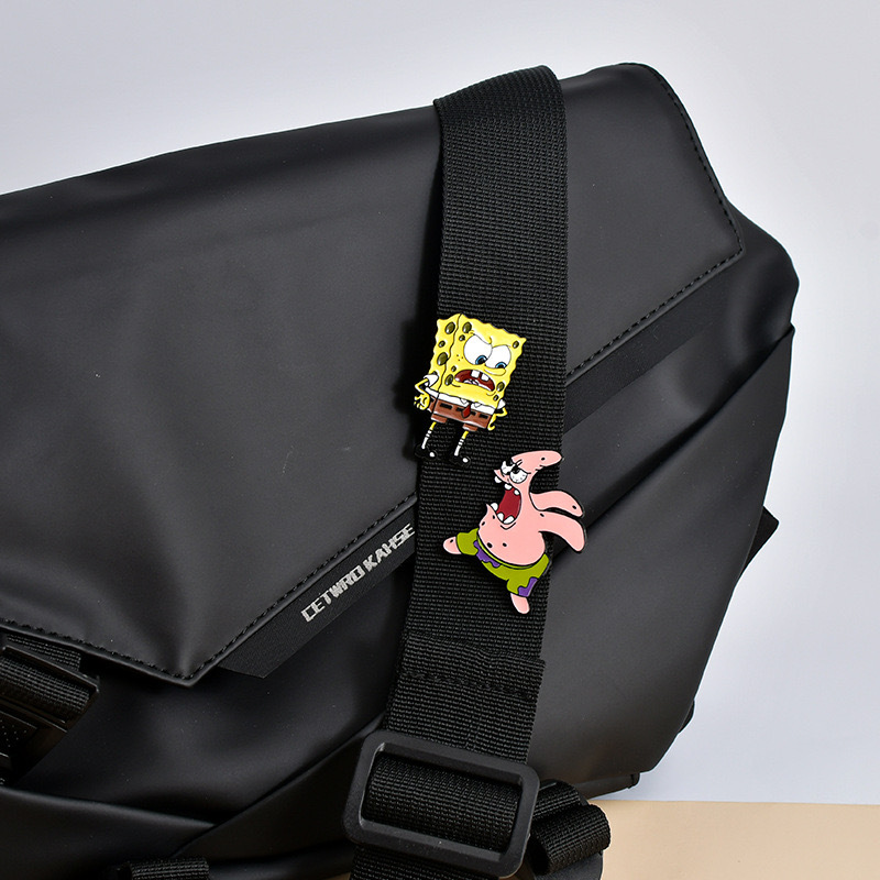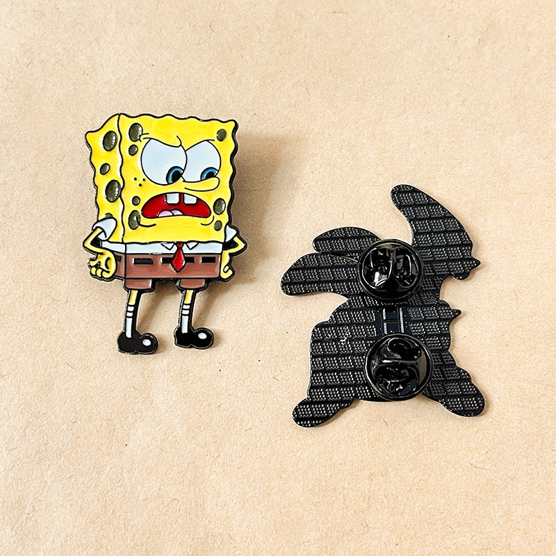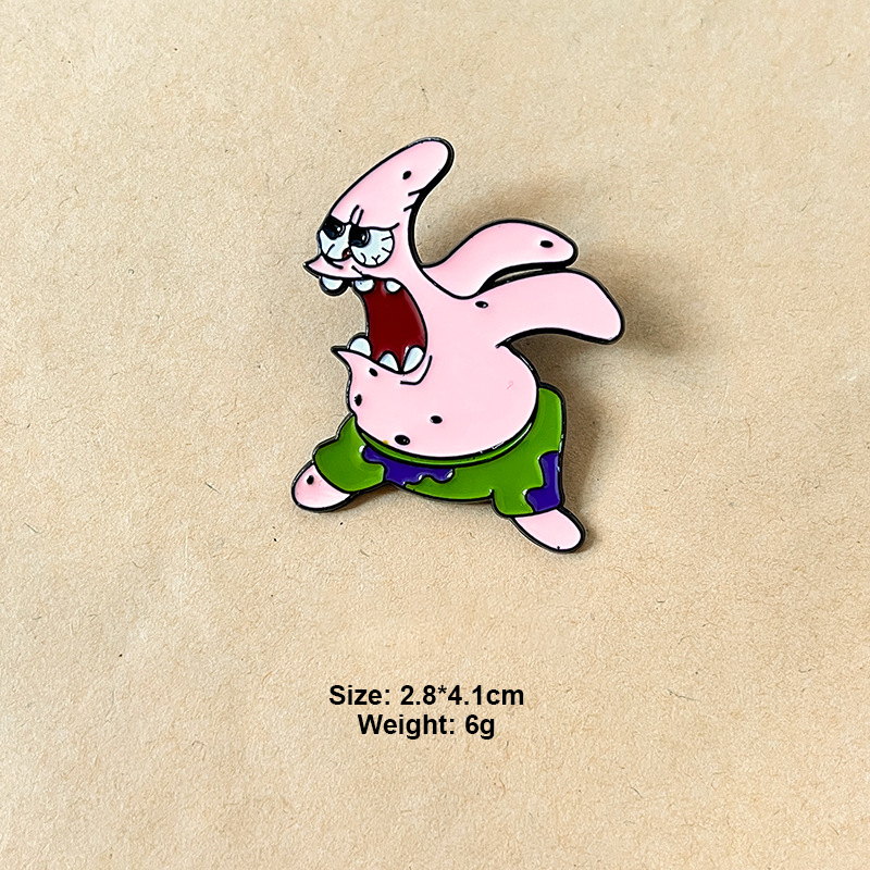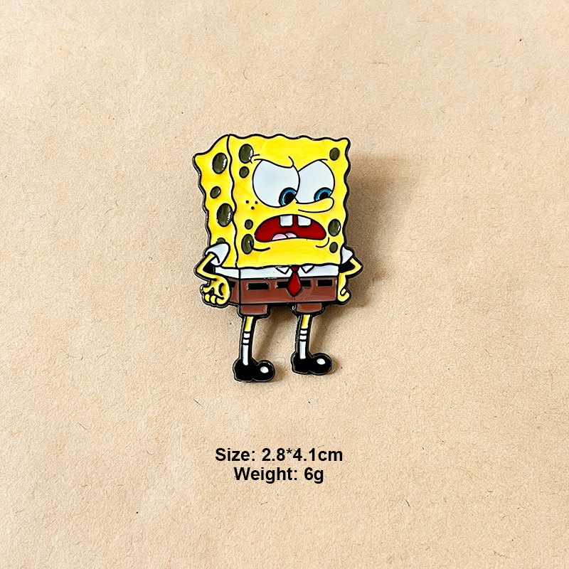 Features iconic SpongeBob/Patrick in lively angry poses with vivid enamel. Ideal for cartoon fans to add nostalgic, playful flair to bags, jackets, or hats—perfect for fandom styling or casual accessory accents.