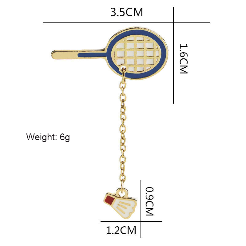 Features dangling sports gear (ping pong ball, shuttlecock) with glossy, gold-trimmed designs. Ideal for sports fans to decorate bags/jackets, adding dynamic, playful charm to game-day or daily styles.