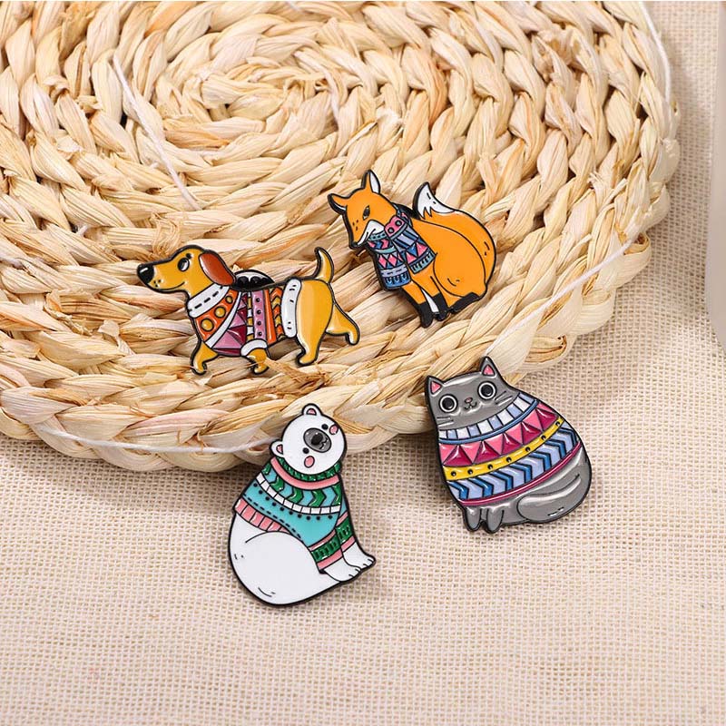 Product : Sweater-Clad Animal Enamel Pin