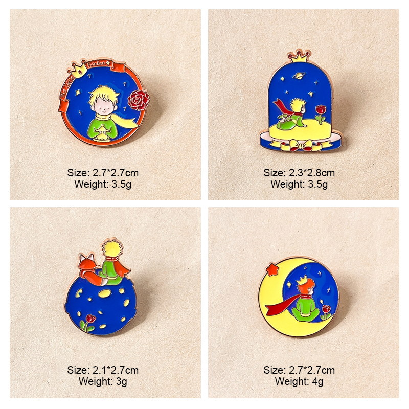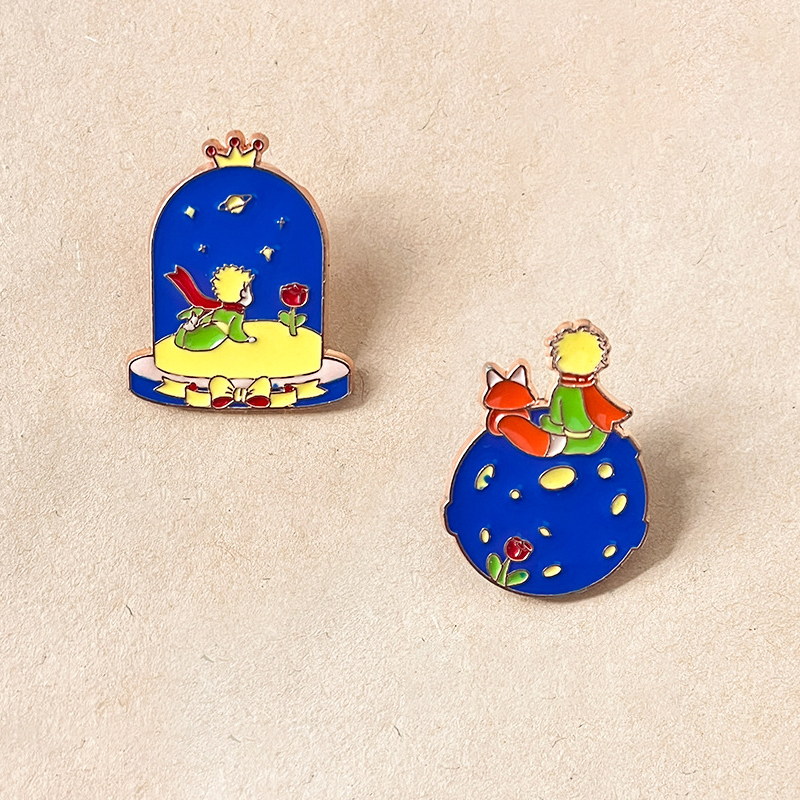 These The Little Prince enamel pins feature diverse shapes (round, moon-shaped, glass dome-styled) paired with classic elements (rose, fox) in warm hues. They decorate caps and bags, perfect for fans to infuse nostalgic, romantic charm into their accessories.