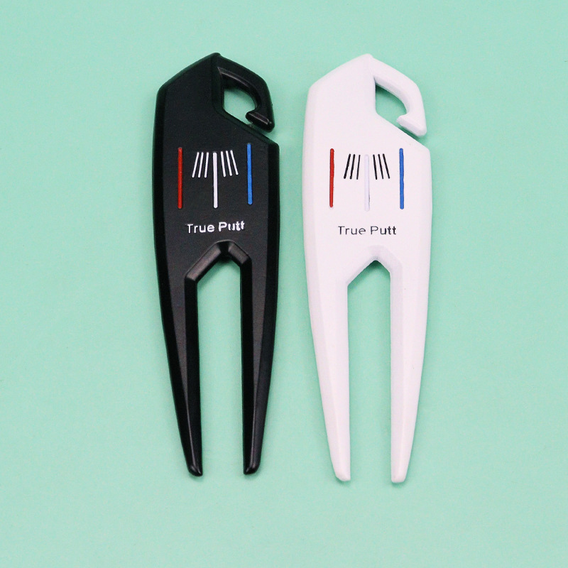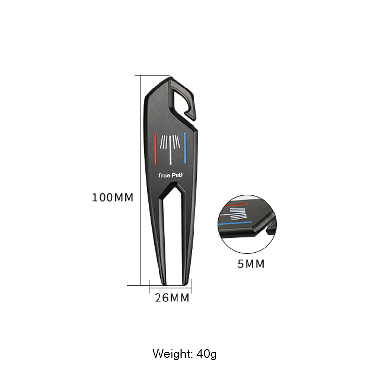 This 40g (100mm) sleek, ergonomic tool (black/white) fixes green divots. It features color-coded alignment markers to enhance putting precision, plus a loop handle for portability—merging functional design with on-course performance, ideal for golfers focused on putting accuracy.