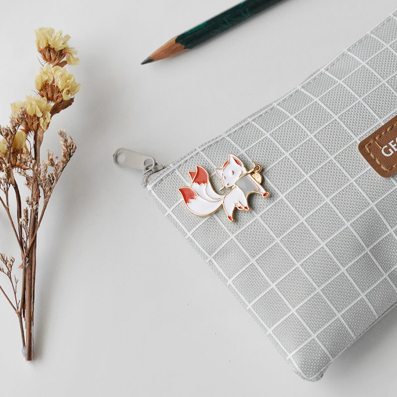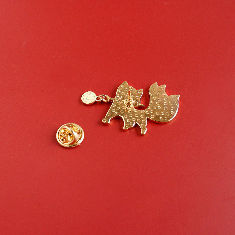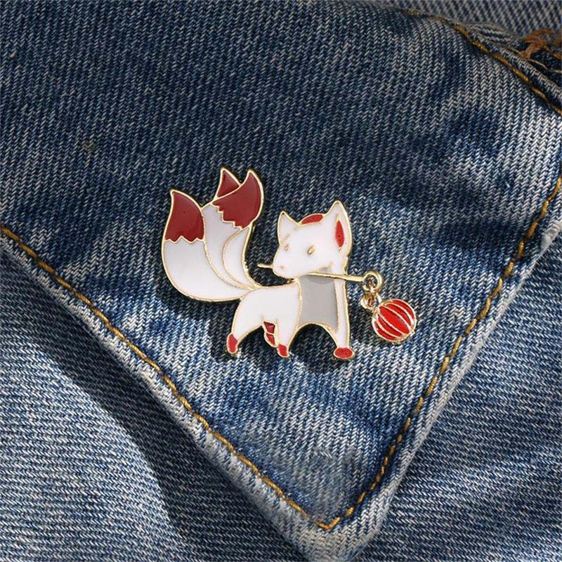 This charming enamel pin features a white nine-tailed fox (a mythical East Asian creature) with a dangling red pompom detail. Sleek, vibrant styling blends mythic charm with cuteness—ideal for adding whimsical flair to clothing as a unique, eye-catching accessory.