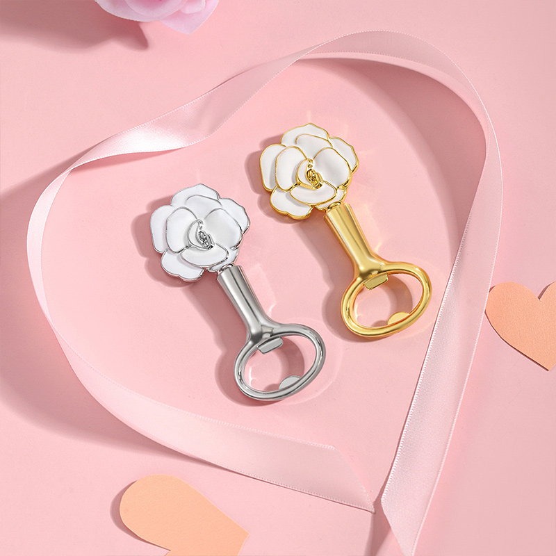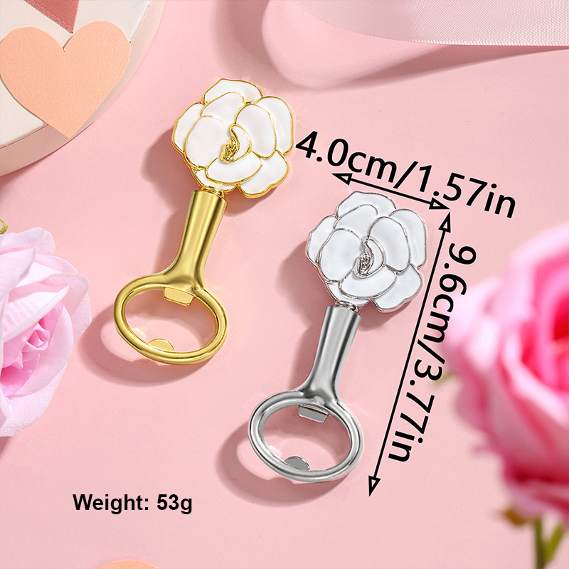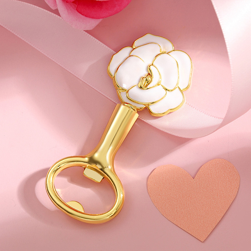 This 53g (9.6cm) opener features a sleek white enamel rose top (with metallic trim) paired with gold/silver handles. It pops caps smoothly, blending delicate, elegant floral charm with minimalist style—ideal for bridal showers, tea parties, or a refined gift for classic-aesthetic lovers.