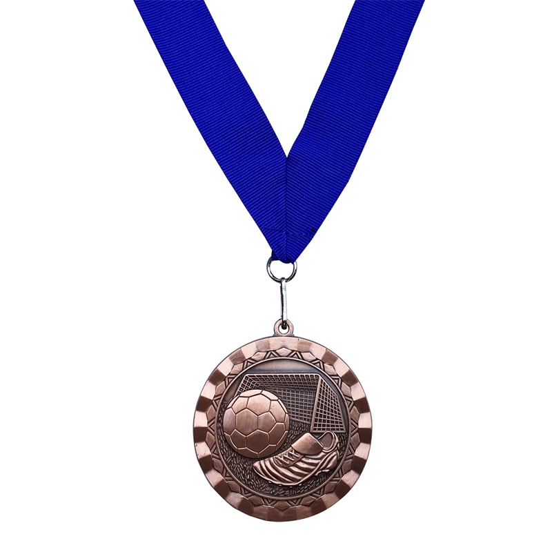 These circular soccer medals (antique gold/silver/copper zinc alloy) feature embossed football, cleat, and goal motifs. Designed for football tournaments, they honor players’ skill—blending sporty detail with durable craftsmanship to mark standout achievements in the game.