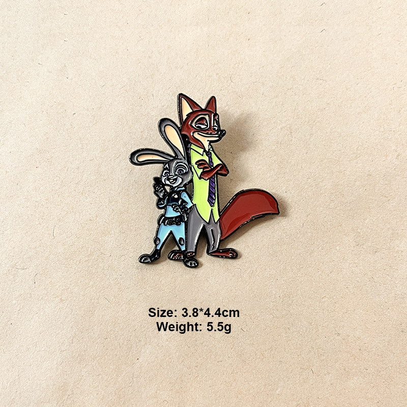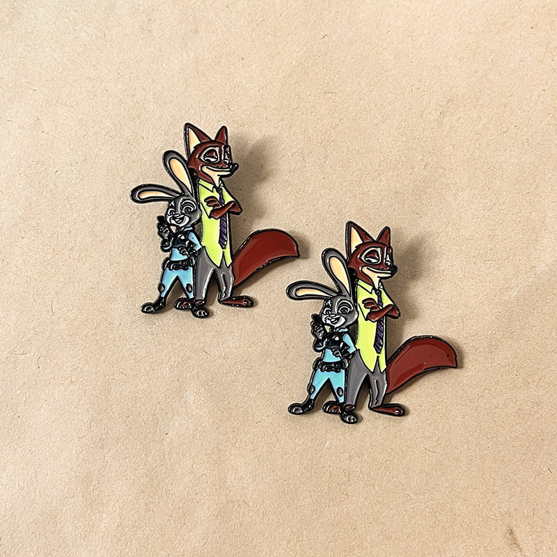 These vibrant pins feature Zootopia’s Judy Hopps (in police gear) and Nick Wilde (in his signature suit), capturing their dynamic buddy vibe. Perfect for fans to add beloved character flair to bags/jackets or collect as a nostalgic Zootopia keepsake.